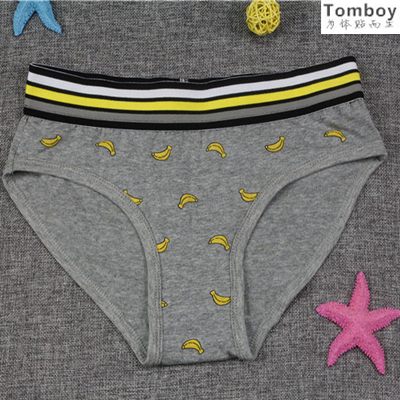 Cute cartoon banana les neutral female handsome T pure cotton mid-waist boxer briefs female models large size four-angle safety pants