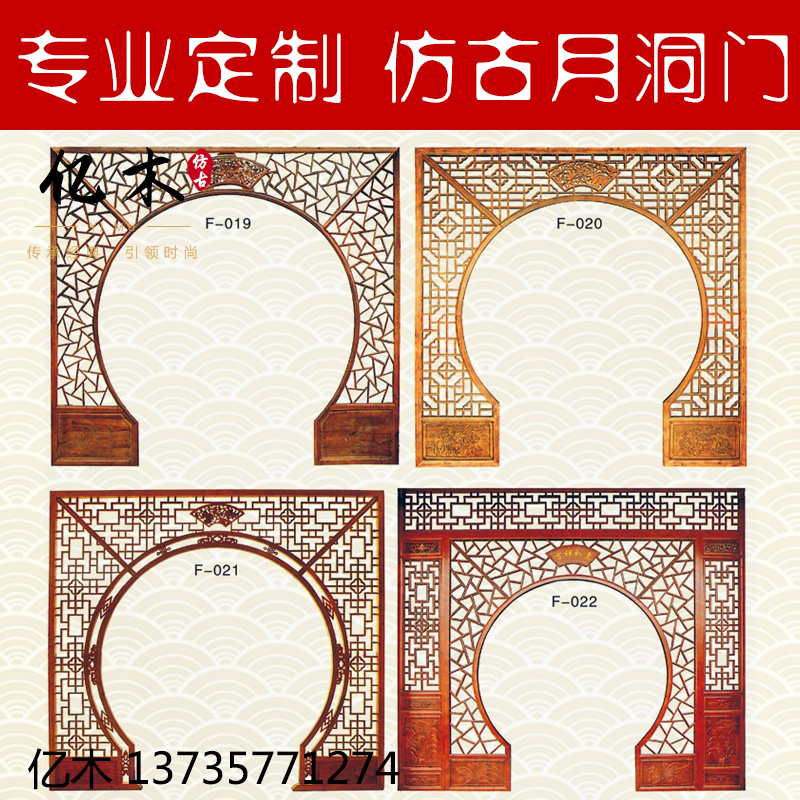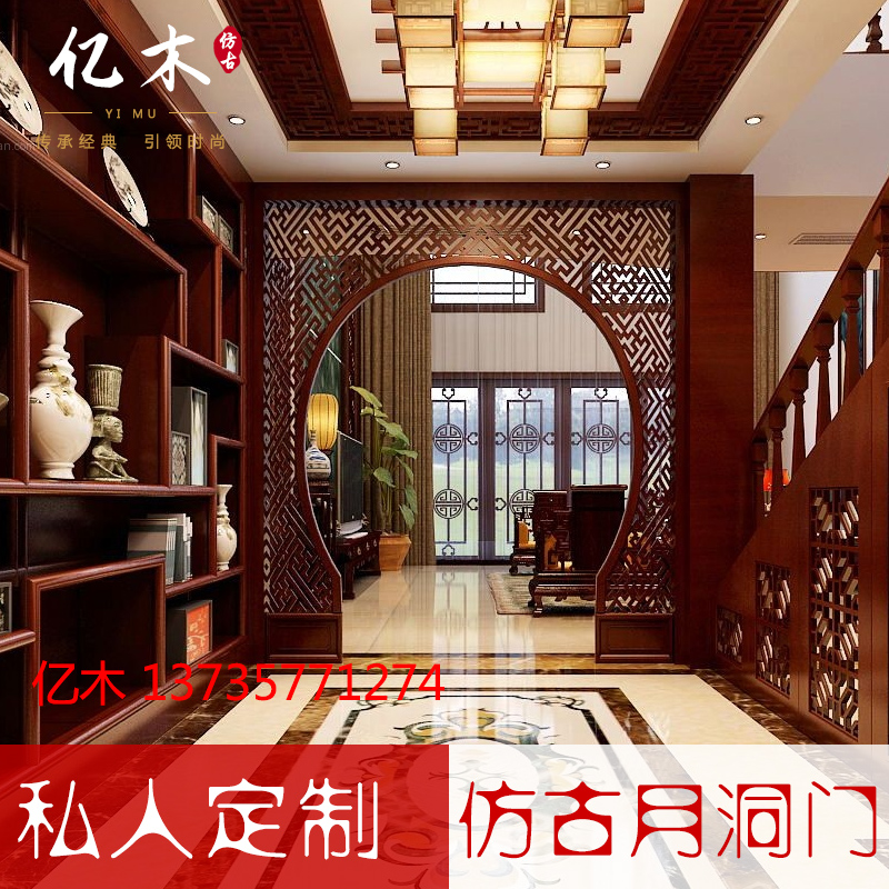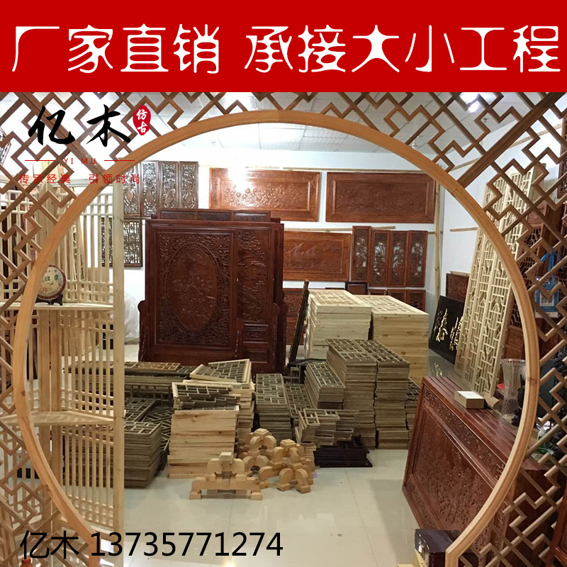 Dongyang wood carving custom moon gate moon cave door Chinese style partition solid wood Chinese style partition antique screen partition doors and windows