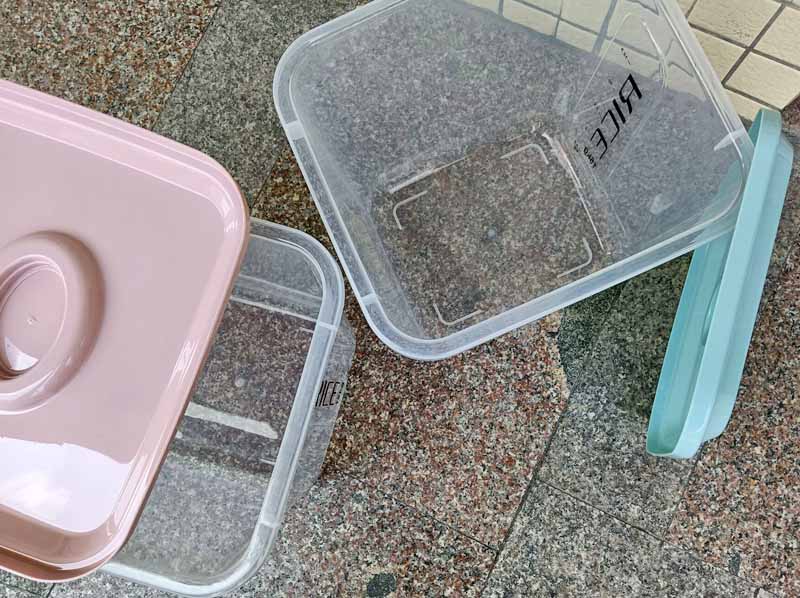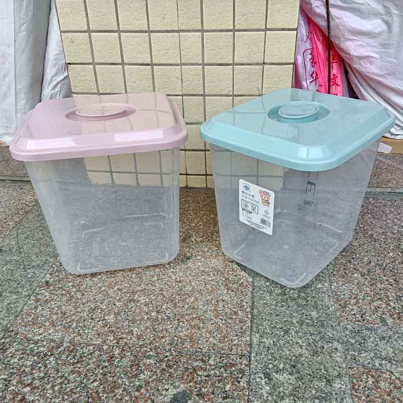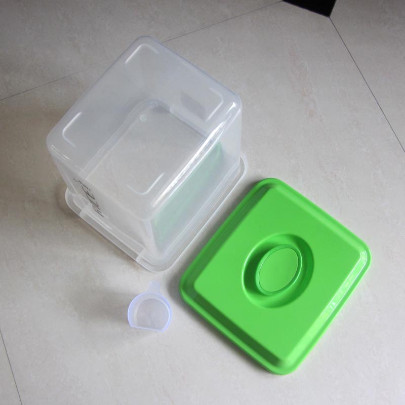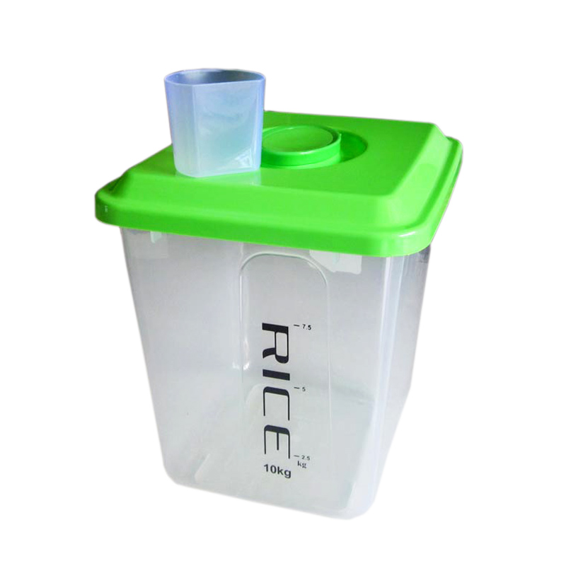 Size Number of plastic transparent rice barrel Home 10 kg 15KG Fitted Kitchen Covered Rice Vat With Scale Delivery Cup