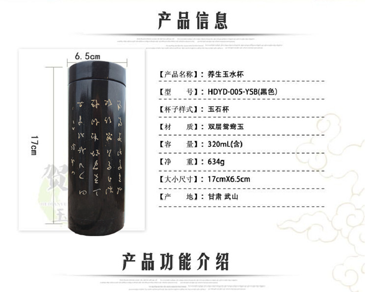 Hedian jade carving wine luminous cup Jiuquan health cup water cup jade water cup Wushan mandarin duck jade luminous cup
