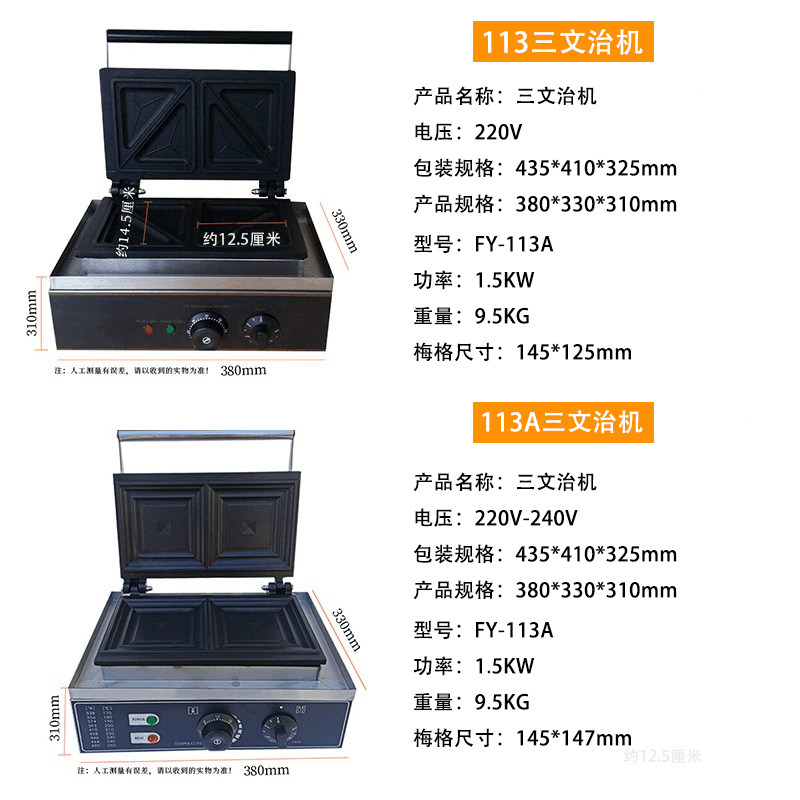 Jieyi Sandwich Machine Commercial Electric Heating FY-113 113A 113E Constant Temperature Control Flying Disc Machine Automatic