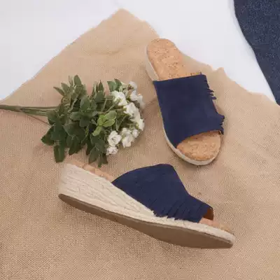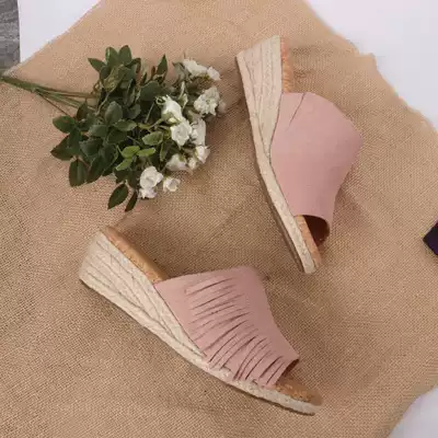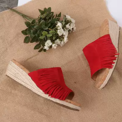Cool drag women's summer wear fashion leather thick-soled tassel sexy wedge sandals 2021 new high-heeled straw slippers