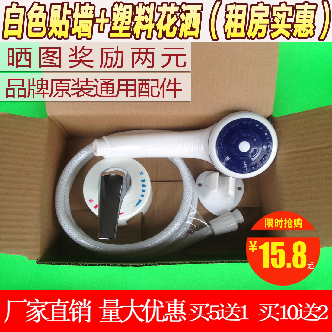 White sticker wall water mixing valve (economy) silver-coated wall water mixing valve (aesthetically pleasing) white patch wall fixed shower head (rental affordable) silver plated patch wall fixed shower head (rental beauty) alloy handle fixed flower