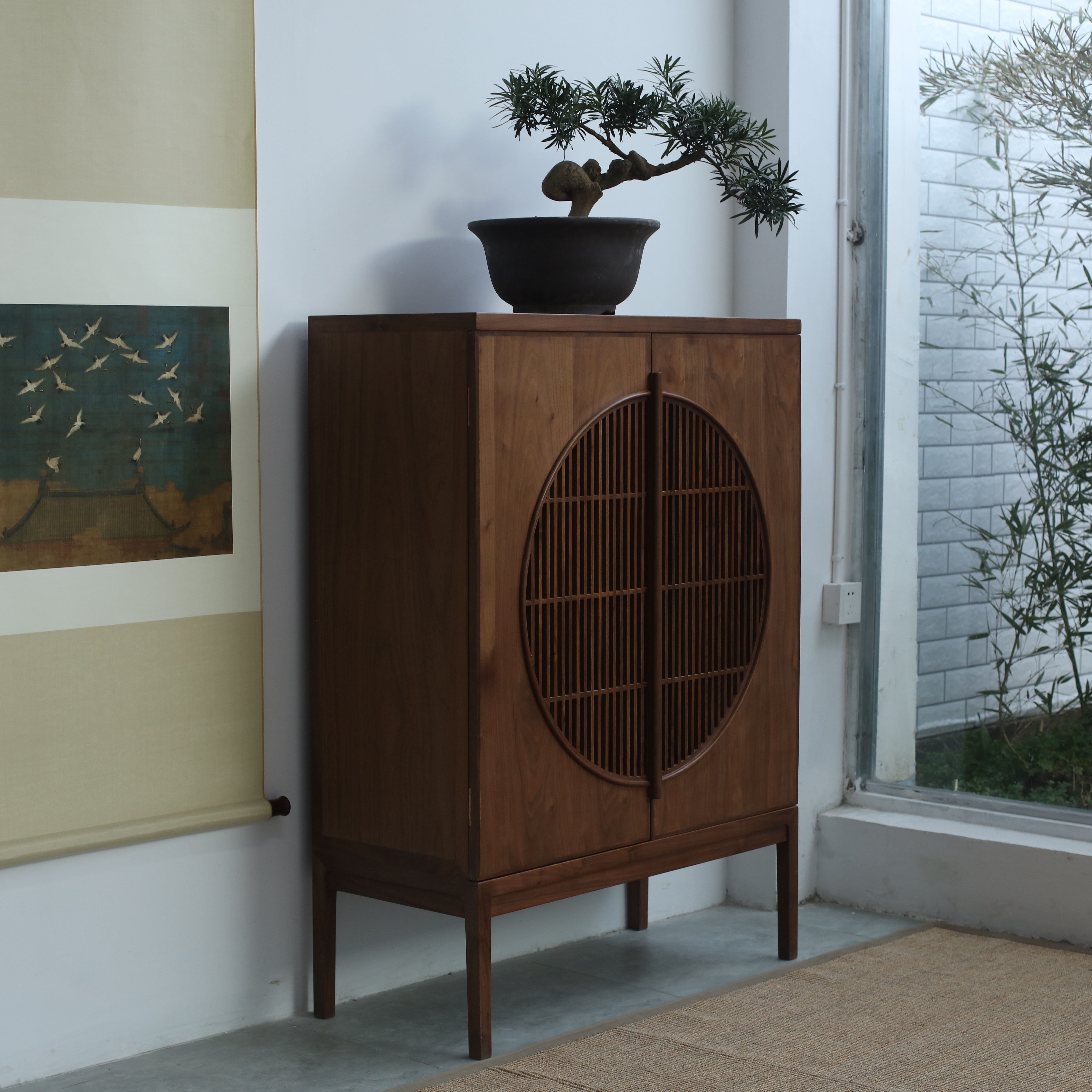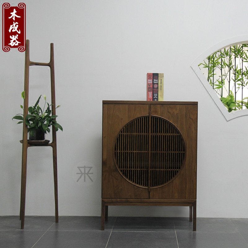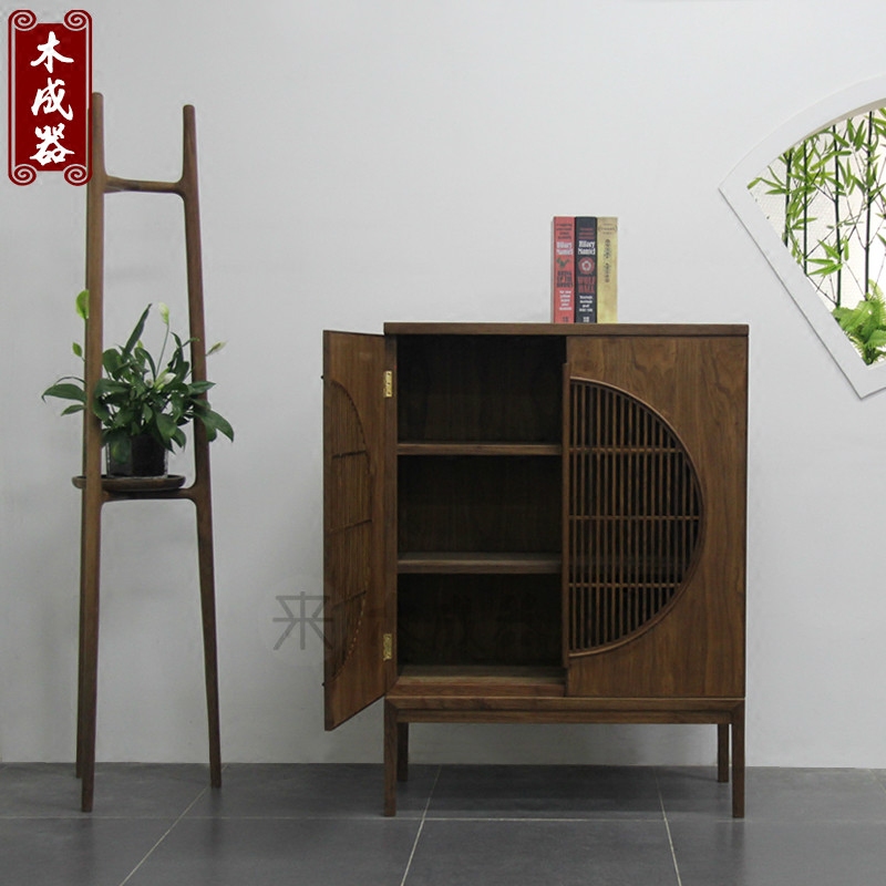 Wooden furniture Zen new Chinese style solid wood side cabinet black walnut furniture old elm porch hall cabinet log shoe cabinet