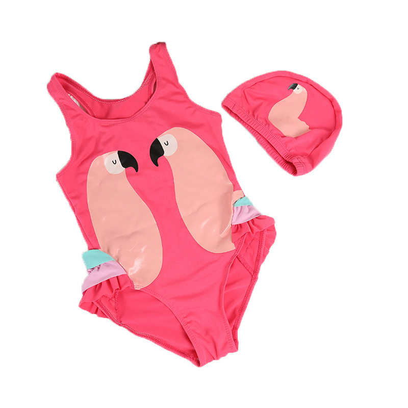 Baby baby one-piece triangle hooded swimsuit Korean version slim cute cartoon Flamingo children's swimsuit
