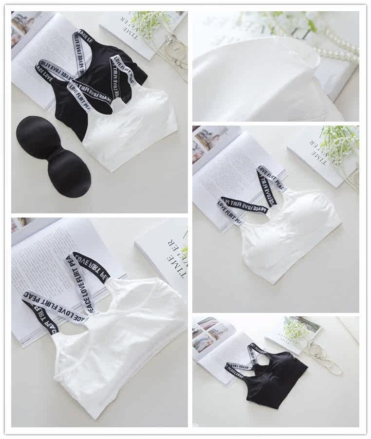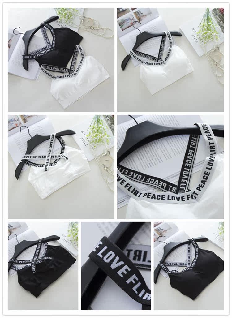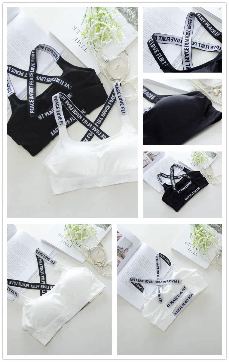 Black Korean version girl vest style cross letter sports bra running shockproof fitness gathered sports underwear tide