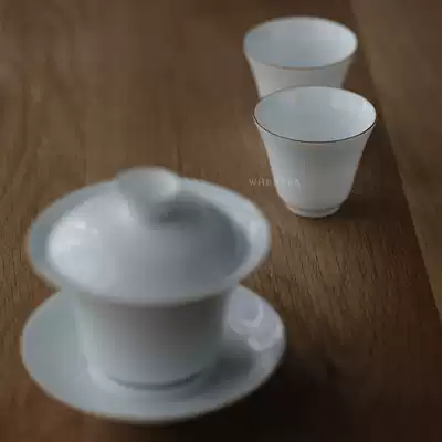 Wen said) Jingdezhen sweet white tea cup simple shape white porcelain tracing light Gold Cup