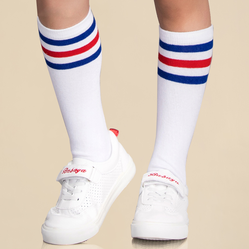 Children's straight socks Red and blue (30-36 yards) Children's straight socks White and black (30-36 yards) Children's straight socks White and red (30-36 yards) Children's straight socks White and blue(30-3