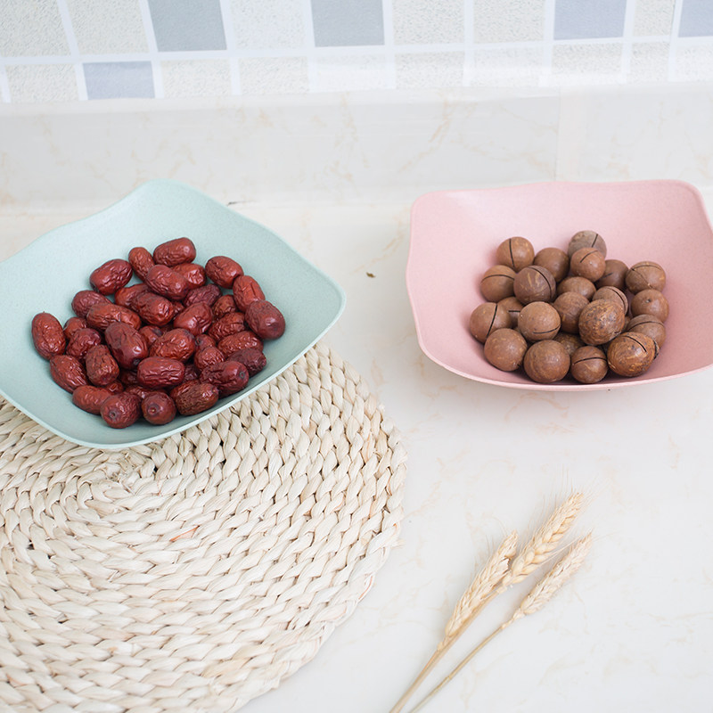 Leisudo Wheat Straw Square Fruit Pan Living Room Dry Fruit Pan Creative Home Melon Pan Snack Dish Snack Fruit Dish