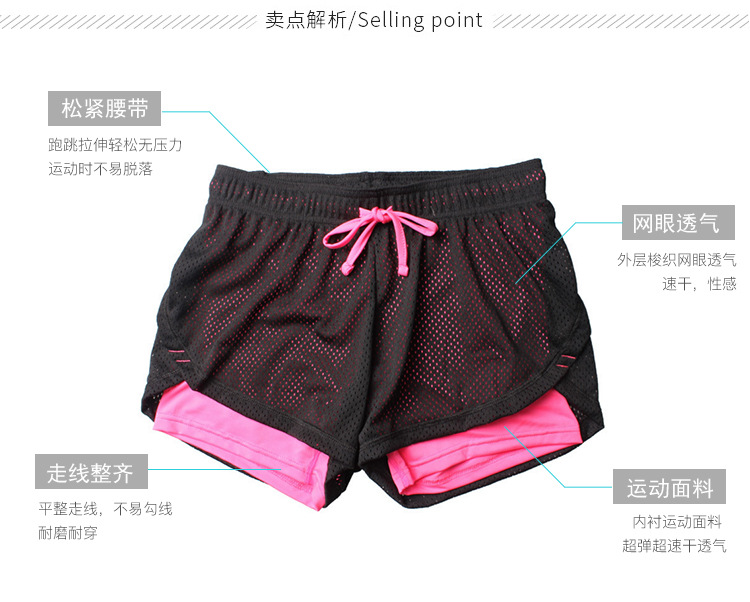 Clearance women's fitness yoga exercise running Mesh breathable quick-drying shorts with lining fake two-piece anti-light
