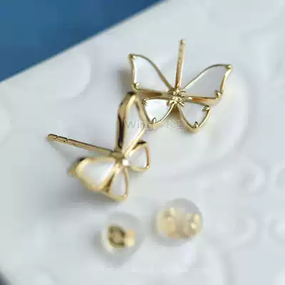 Wing|Butterfly clothes 18k gold white butterfly mother shell diamond ear earrings Yingrun white elegant beauty