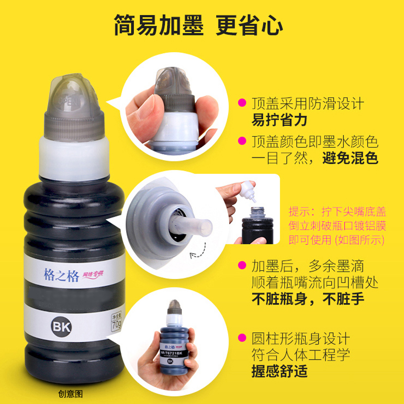 Black Blue Red Yellow Pale Blue Magenta 6 colors each bottle T6741BK black (can be mixed with the original) T6742C cyan (can be mixed with the original) T6743M red (can be mixed with the original) T6744Y yellow (can be mixed with the original) T6745LC light cyan (can be mixed with the original) T6746LM magenta (can be mixed with the original)