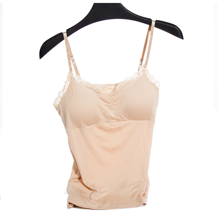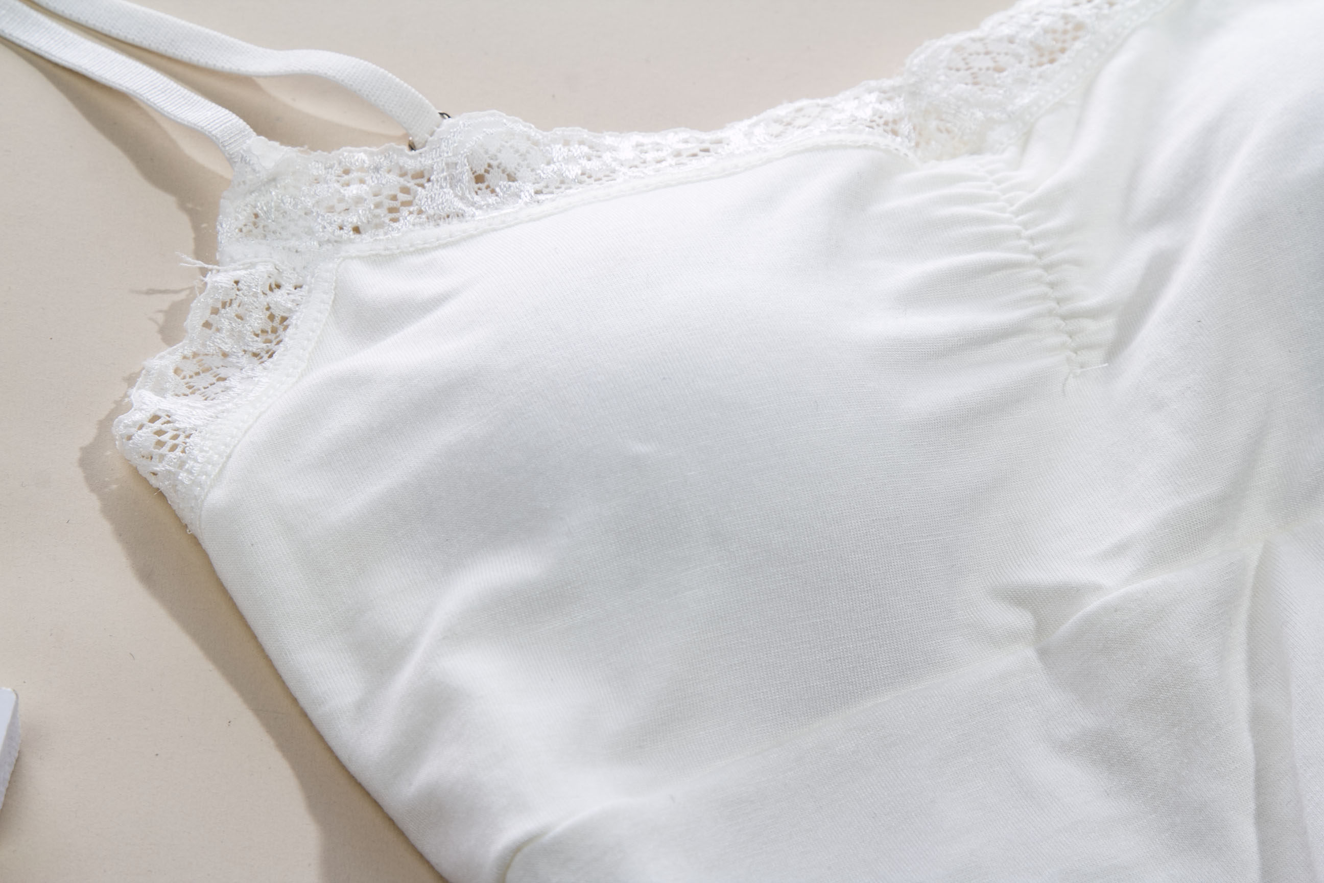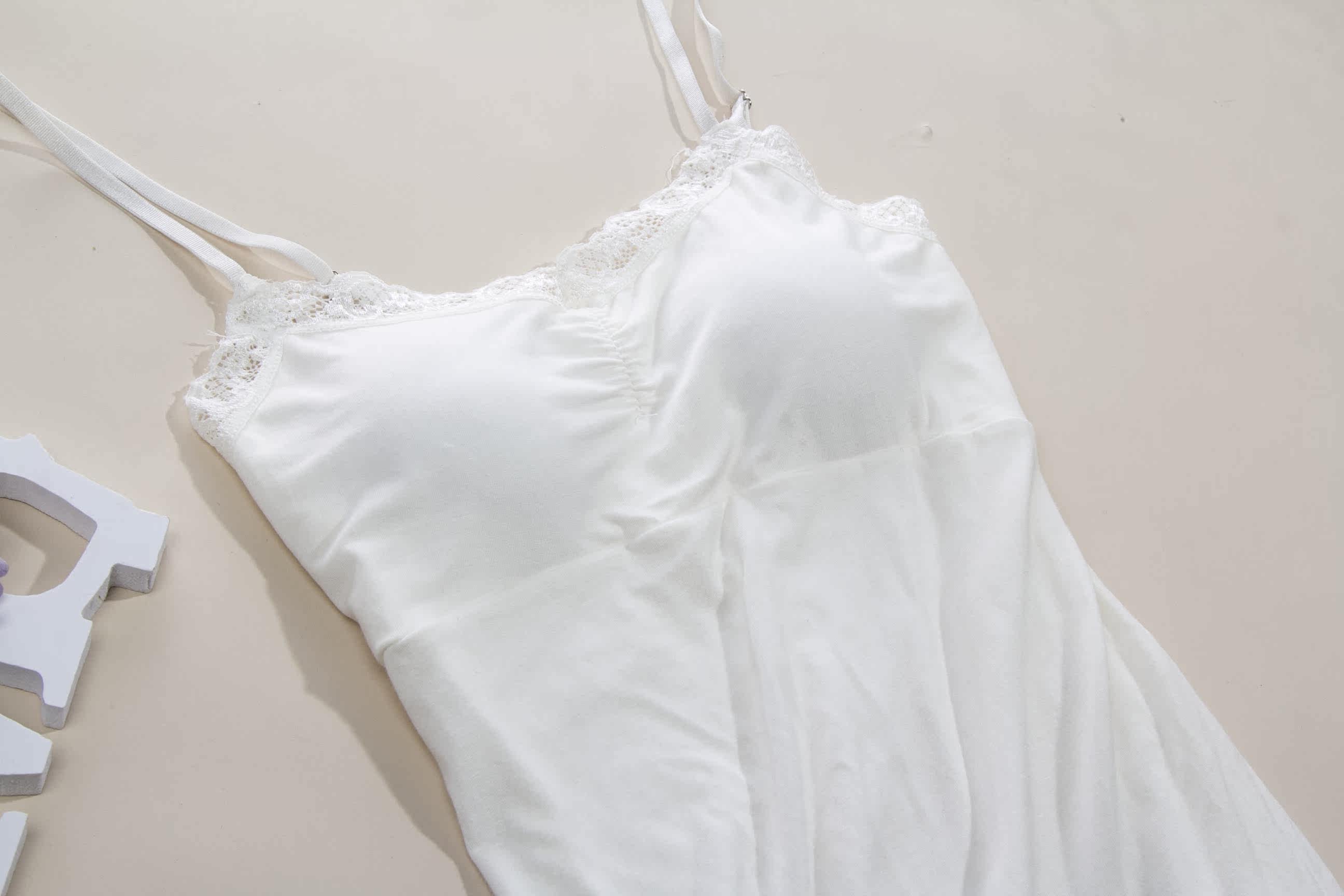 Wearing white modal lace outside and inside with chest pad vest all-in-one underwear cup-style suspender bottoming shirt women