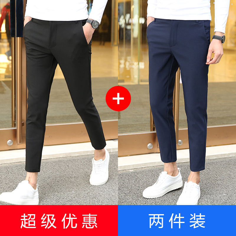 Nine-point pants men's slim cigarette pants men's casual pants Korean trend pants men's spring black 9-point trousers men