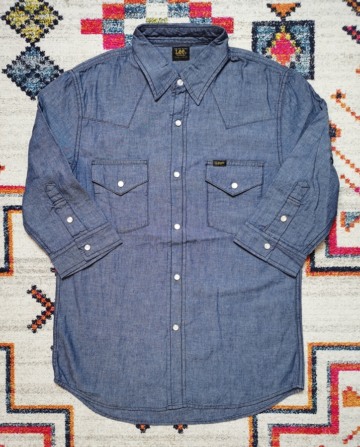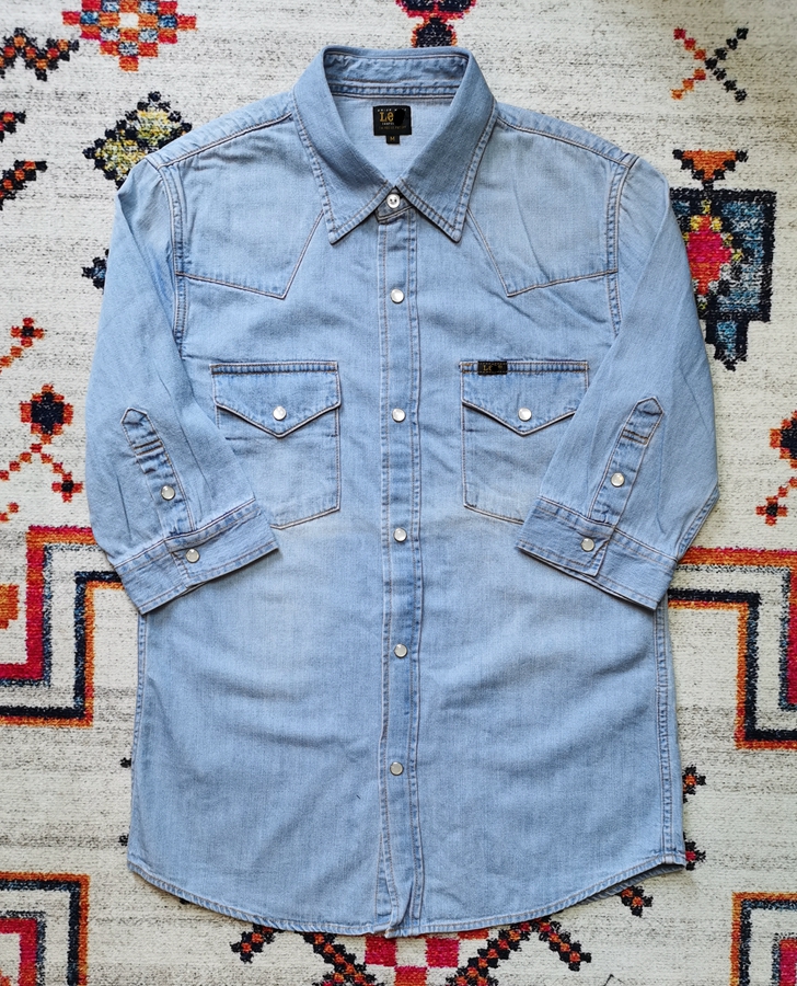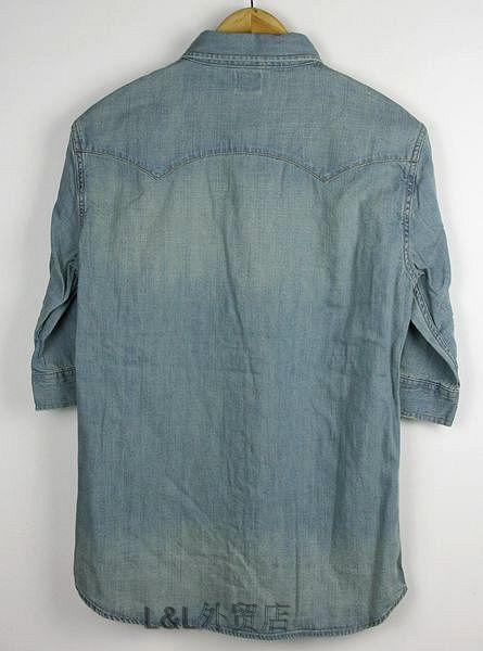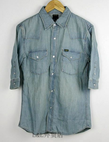 Foreign trade Japanese single le men's denim self-cultivation blue old-fashioned retro five-point sleeve shirt summer shirt A00111