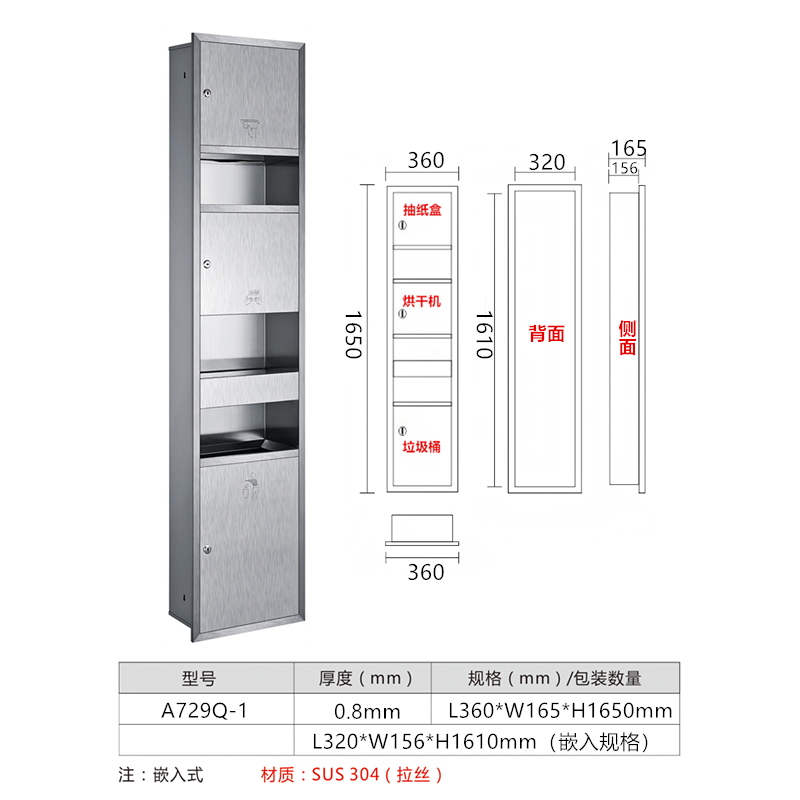 304 stainless steel two-in-one sanitary carton with toilet paper rack large garbage bin concealed embedded in wall removable toilet paper box