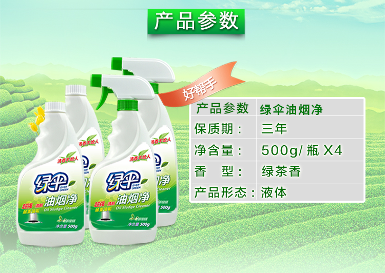 Green umbrella super strong fresh oil smoke net 500g * 4 bottles of green tea scented forcefully to oil stain gas stove