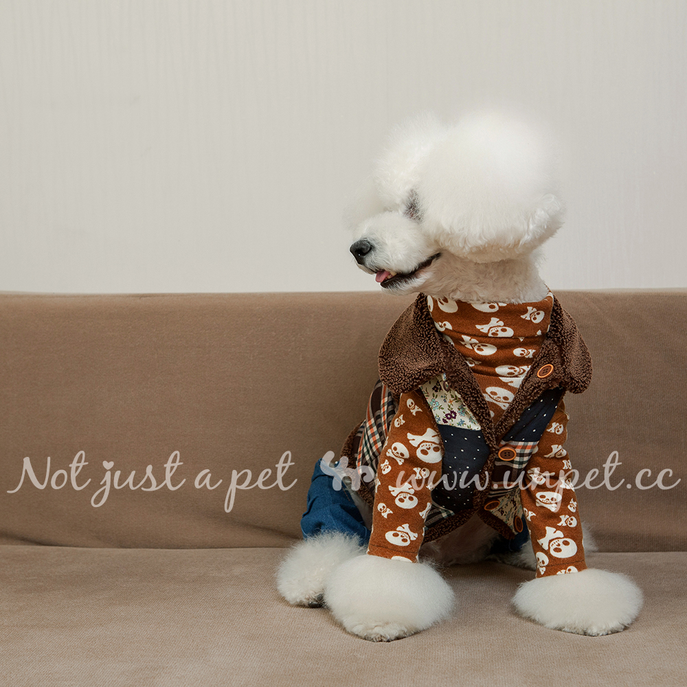Unpet Bao dependents Pet dog clothes High collar Skull skull knit undershirt brown Caribbean Leisure resistance-Taobao