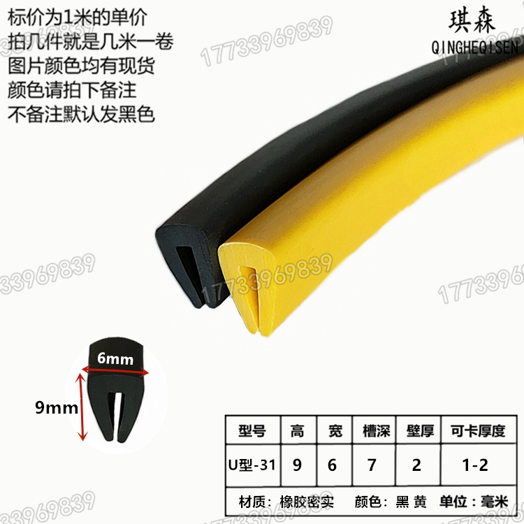 Rubber Wrapping Strips U Type Rubber Strips Rubber Crashworthy Strips Rubber Strips Glass Insert Sealing Strip of Border Collider