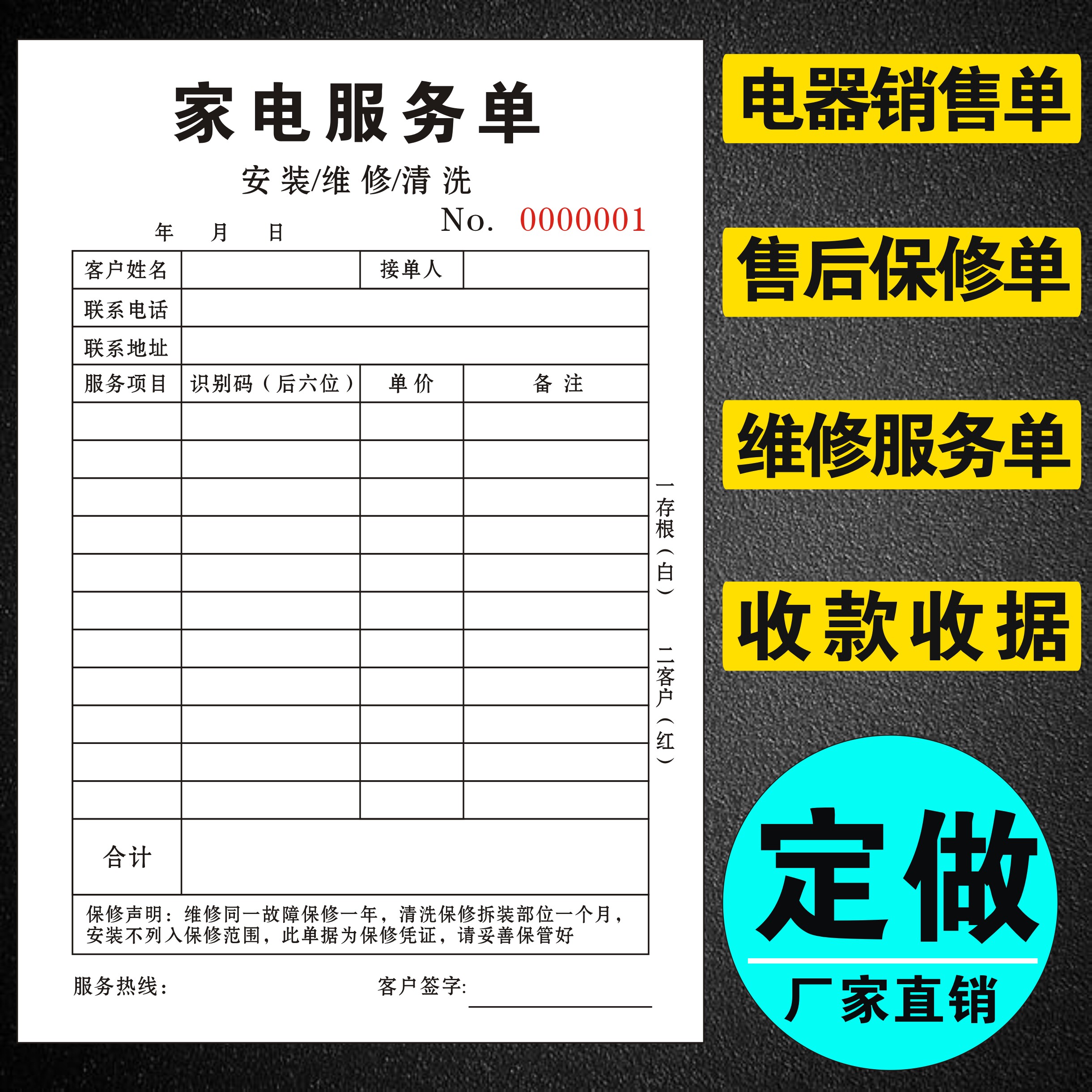 Home appliances Repair after-sales service Baosho Shan 2nd United Order to make exclusive rewritten receipt of sales warrant of electrical equipment special sale store