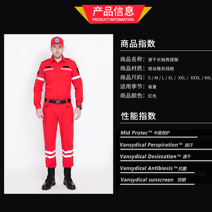 Sharp peak summer red quick-drying emergency rescue suit Fire rescue suit Rescue suit Car rescue suit