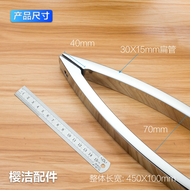 Shower room door bathroom accessories glass push door handle 304 stainless steel tip moon type 400mm handle