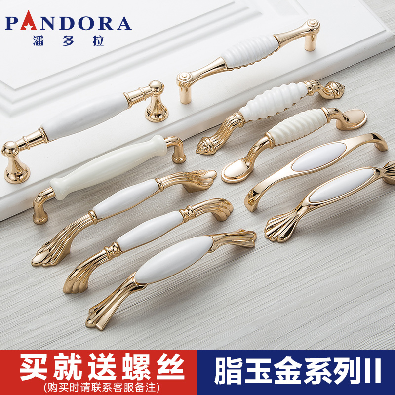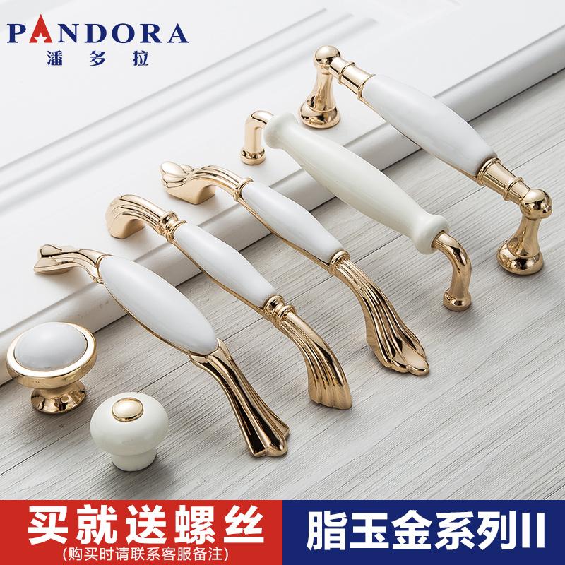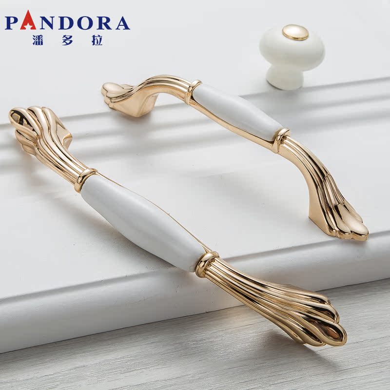 Door handle Ceramic gold white European and American Mediterranean pastoral style Clothing overall cabinet sub-shoe cabinet drawer door handle