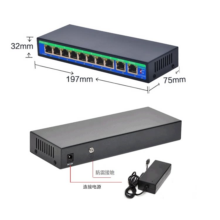 Iron shell 8 mouth 10 mouth 100 trillion POE Power supply switch 12 15 15 36 24 48 48 52V 52V Monitoring Standard AP-Taobao