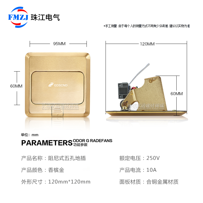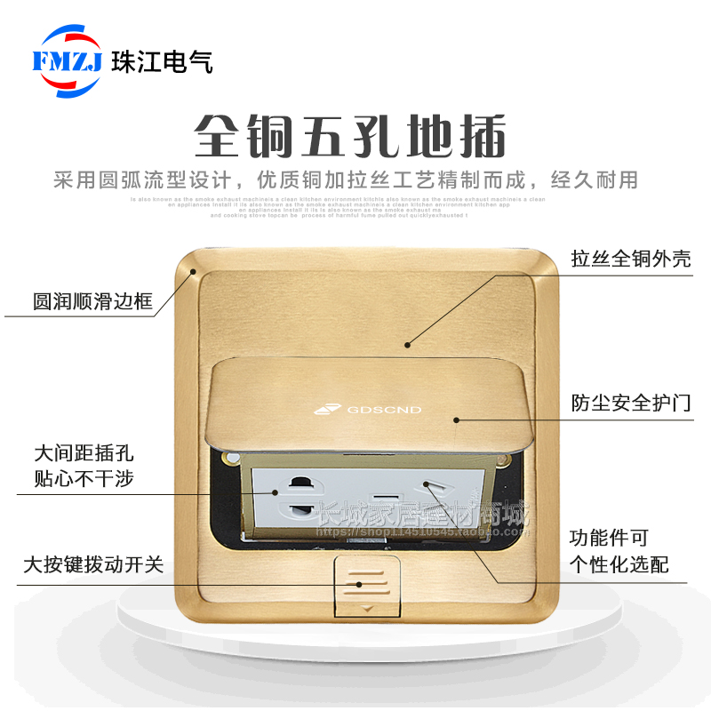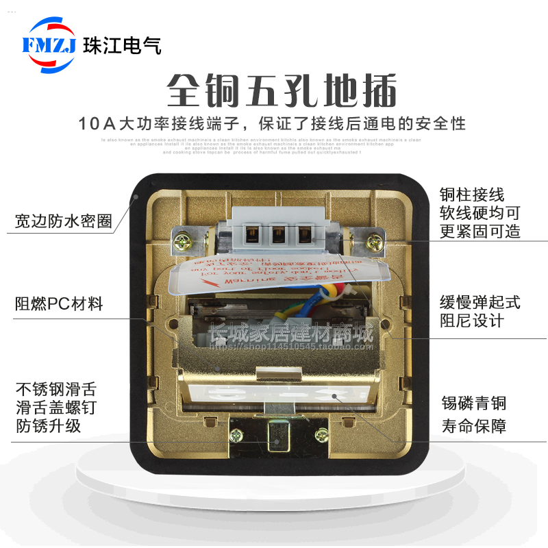 Ground socket full copper waterproof damping ground socket full copper anti-suction bullet up damping 5-5 hole ground floor home