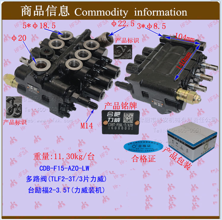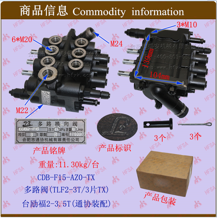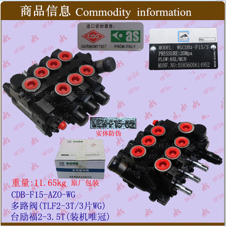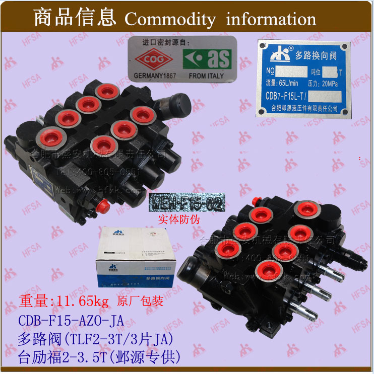 Multi-way valve (TLF2-3T 3-piece CDB-F15-AZO-Tailift 2-3 5*forklift hydraulic pressure regulating distribution flow valve