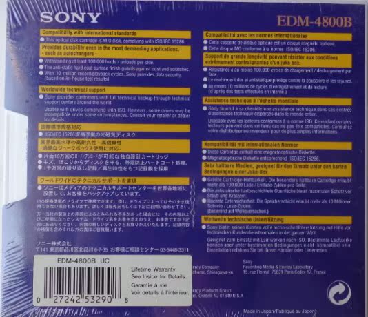 SONY MAGNETIC DISC Sony MO MAGNETIC DISC EDM-4800B 5 25-inch MO Disk