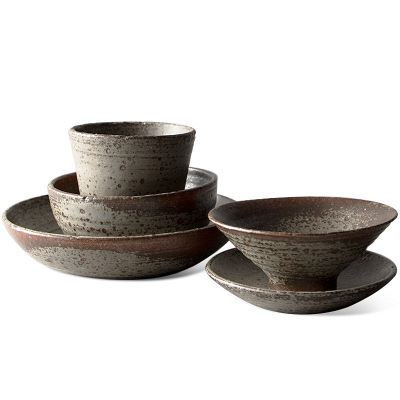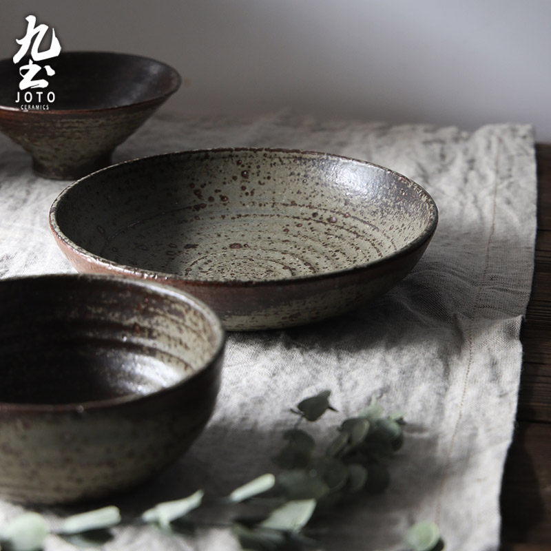 Nine earth handmade coarse pottery tableware set Japanese tableware dishes dishes plates cups Five-piece set custom household utensils