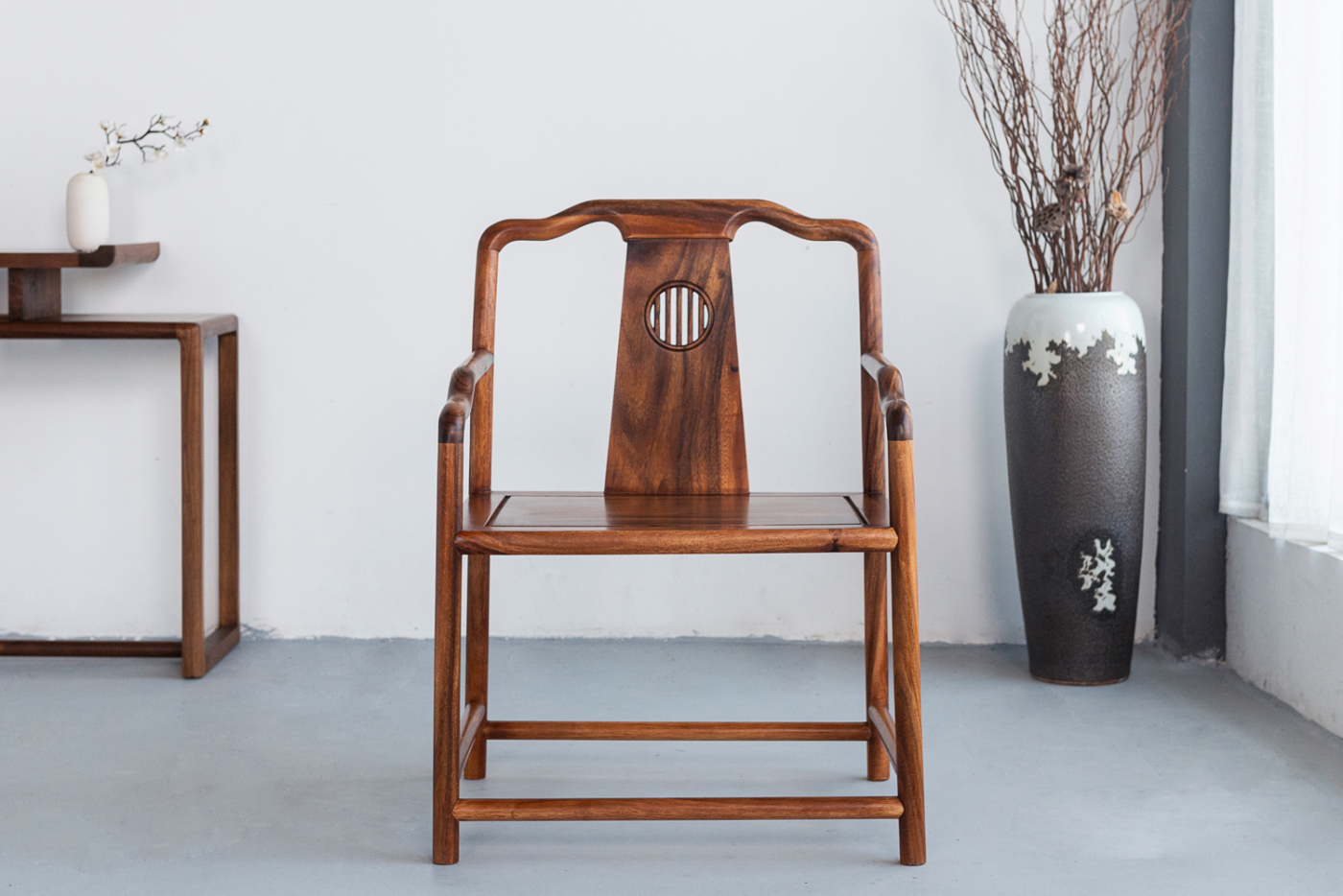 Walnut solid wood chair official hat chair armchair log backrest chair Taishi chair Chinese style reception chair tea chair dining chair