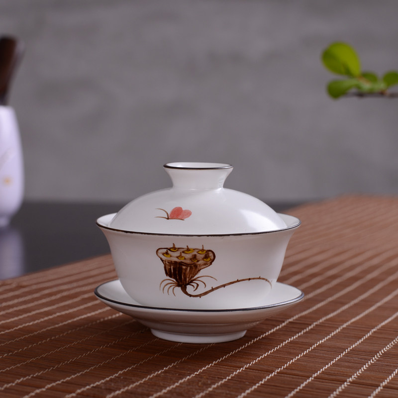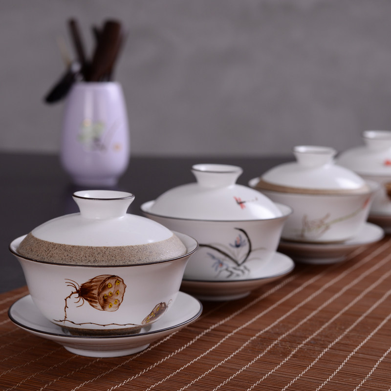 Hand-drawn ceramic bowl of three-tall kung fu tea cup cup tea cup tea ceramic cup tea ceramic cup tea ceramic cup tea ceramic cup