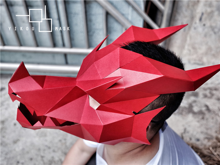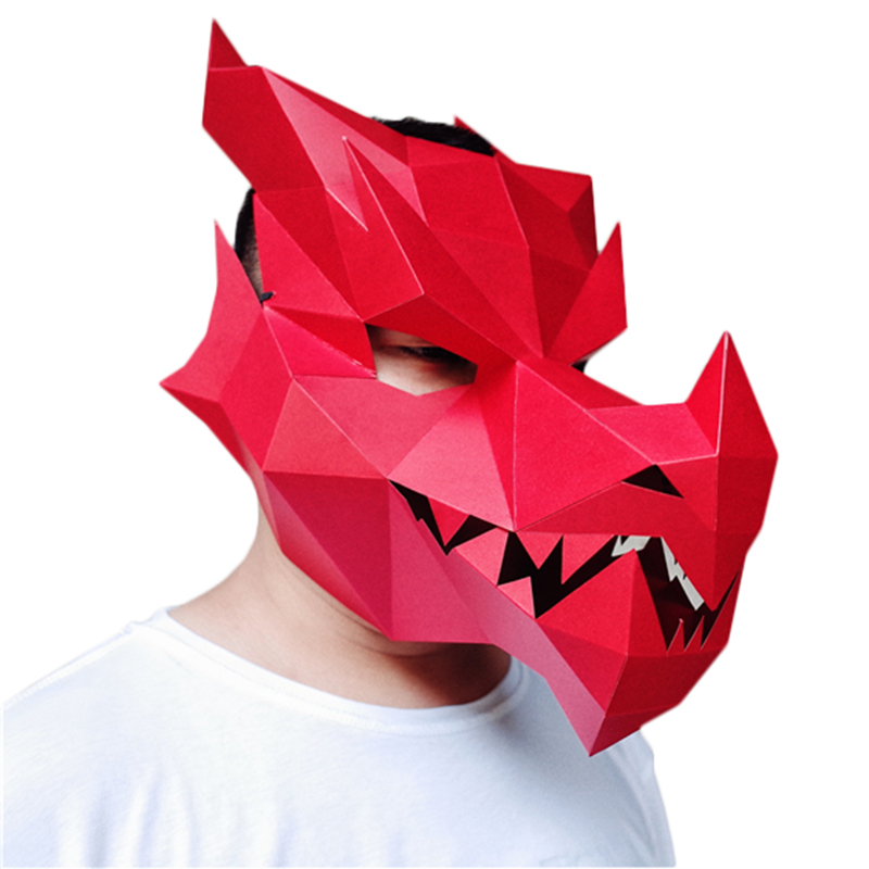 Chinese dragon mask headgear duozodiac party Animals personality Cool European and American paper DIY Art and Literature