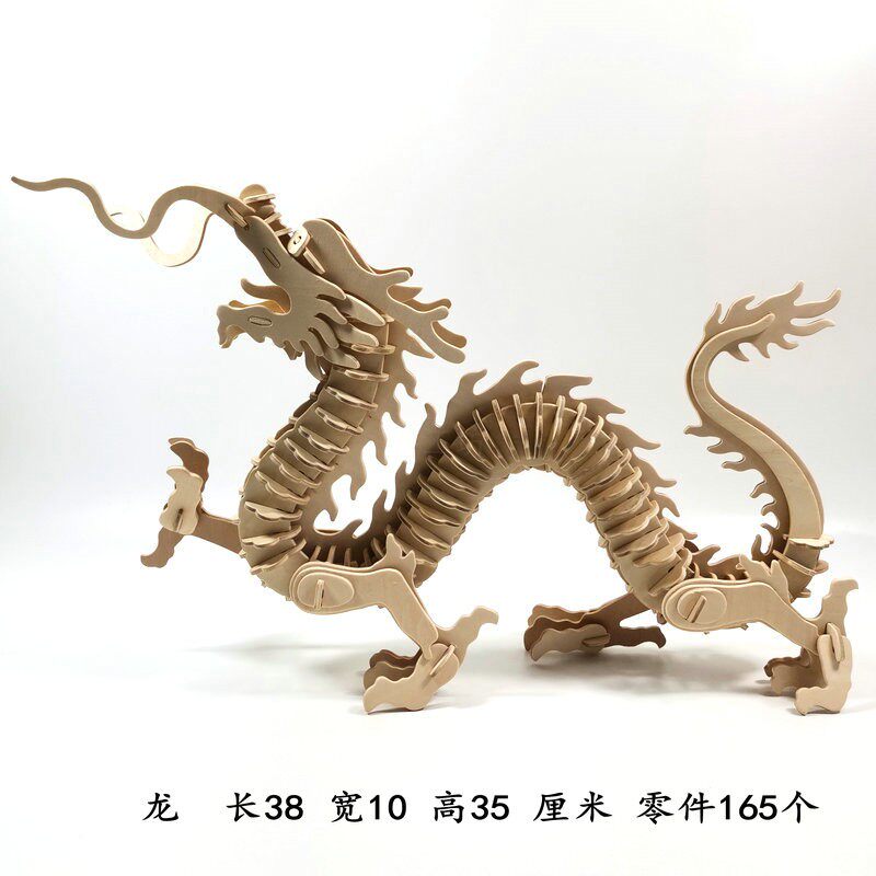 Wooden Puzzle Children Puzzle Toys China Dragon 3d Solid assembly building blocks 7-10-year-old boy girl handmade