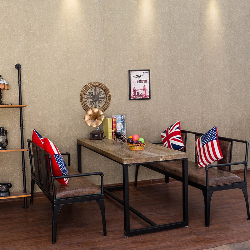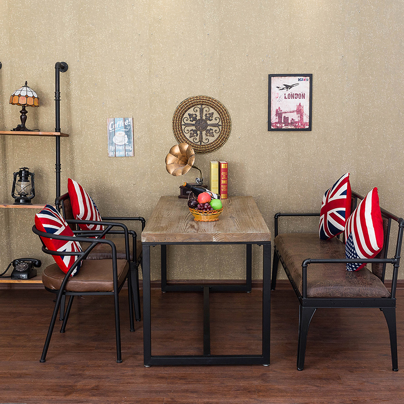 American retro wrought iron double sofa chair cafe card seat bench hot pot table and chair bar three card seat table and chair