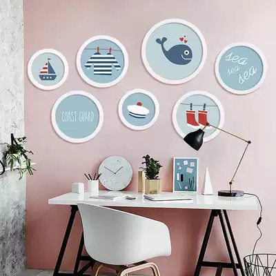 Korean round creative photo frame hanging wall non-perforated bedroom living room wooden wedding photo frame diy