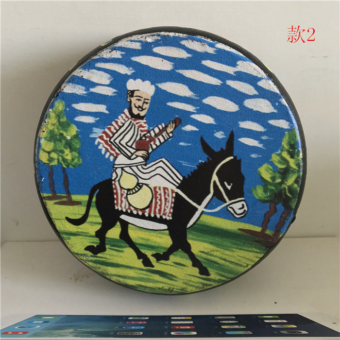 Xinjiang Uygur Artisanal Folk Musical Instrument Hands Drum Bull Leather Colored Drawing Stage Performance Props Decoration Drum 6 Sizes