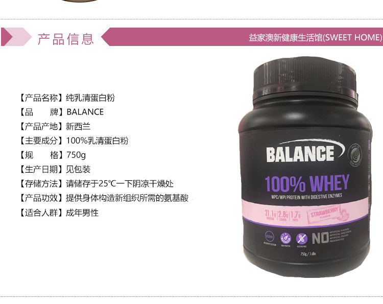 New Zealand Nutralife Newle Balance Whey Protein Powder Fitness Gain 750g