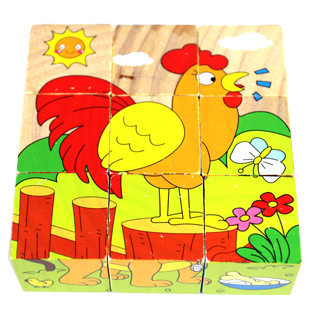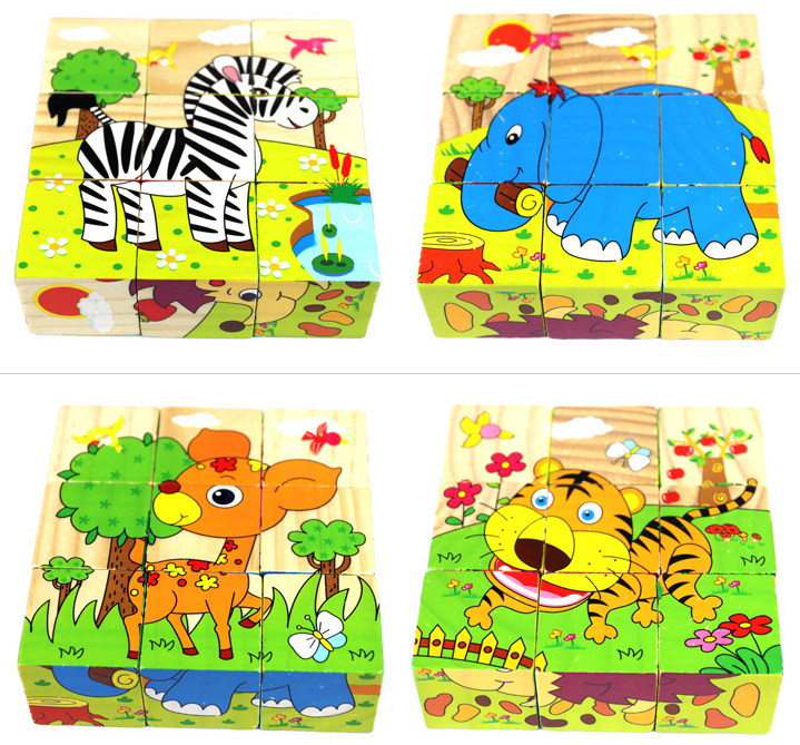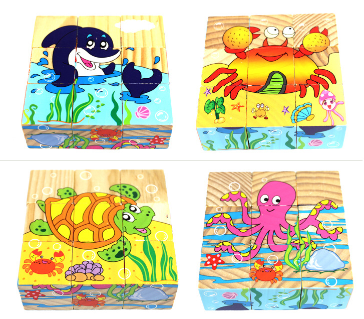 Wooden 9-grain six-faced painting 3D three-dimensional cartoon jigsaw puzzle wooden young children baby early education educational toy 3-6 years old