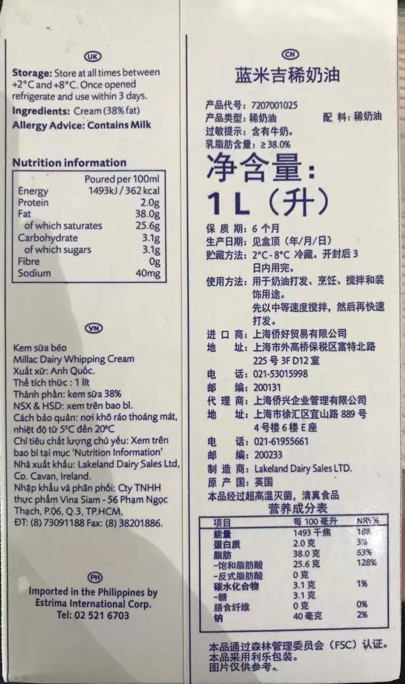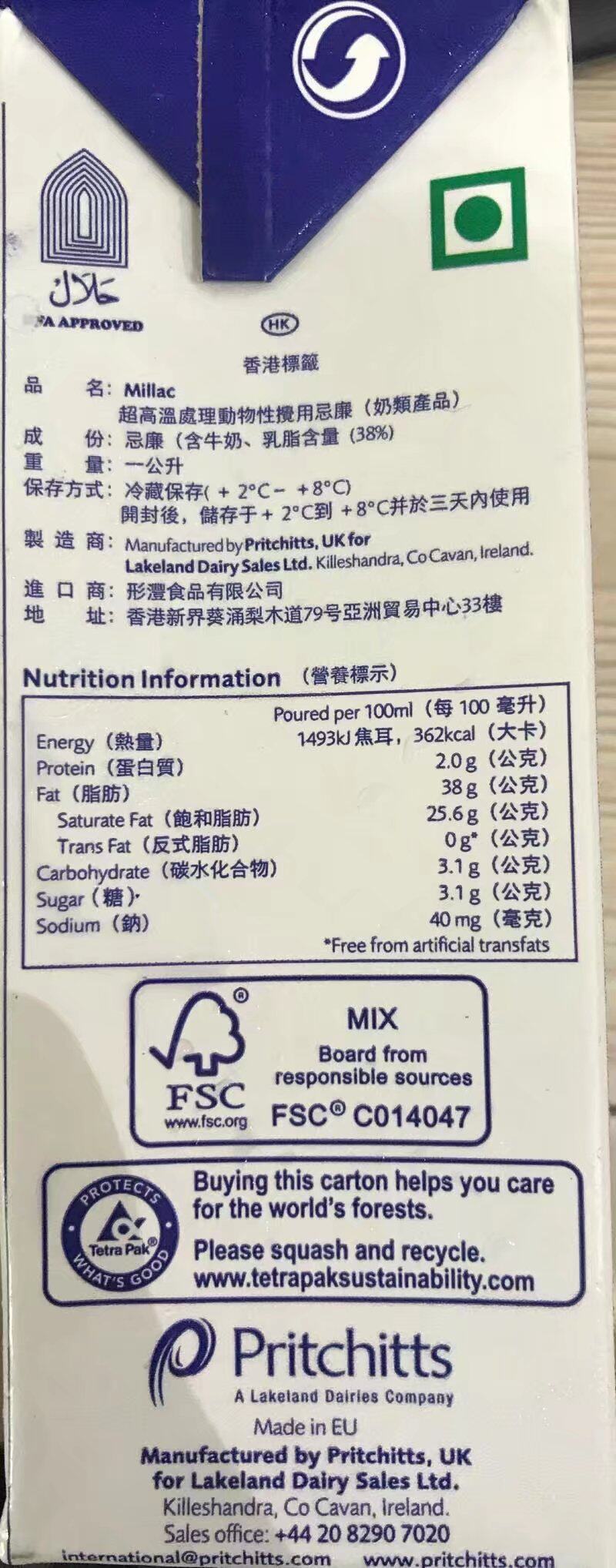 Blue Windmill Light Cream 1L Blue Windmill Light Cream 12 Boxes 1 Case