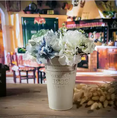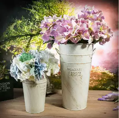 Retro do old white small iron bucket flower pot tin vase wrought iron binaural flower bucket flower bucket flower bucket flower bucket