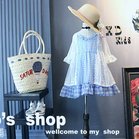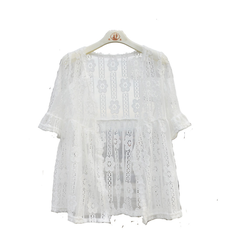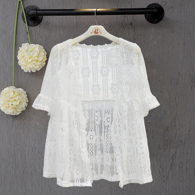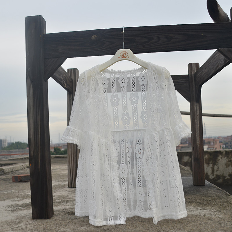 Girl's dress small coat middle long lace outer with girl's shoulder sunscreen children white sweater thin