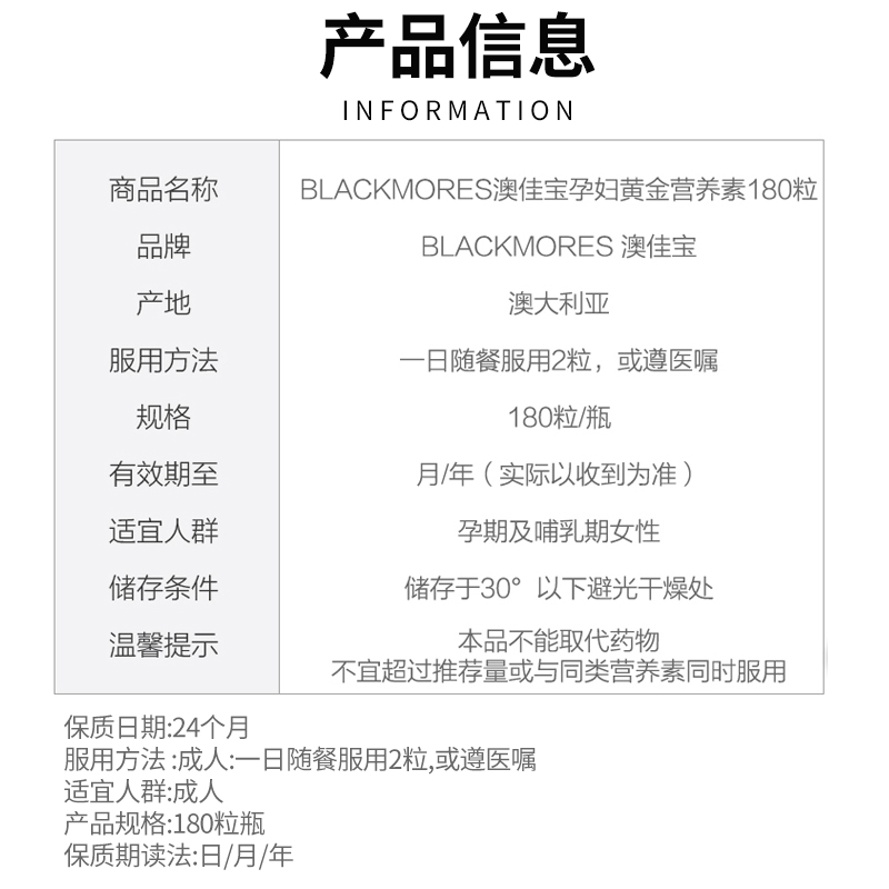 BLACKMORES Australia Jiabao pregnant women with gold nutrients 180 tablets of folic acid DHA Compound Vitamin-Taobao