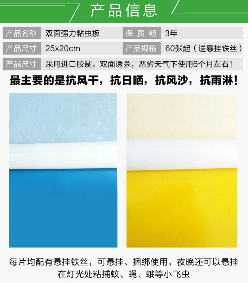 Double-sided armyworm board Yellow blue sticky stick insect board Paper paste Tea garden fruit tree vegetable greenhouse Flying insect fruit fly thrips