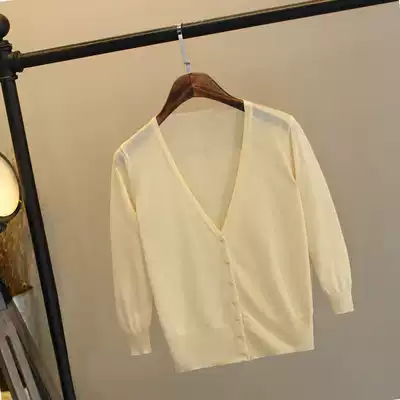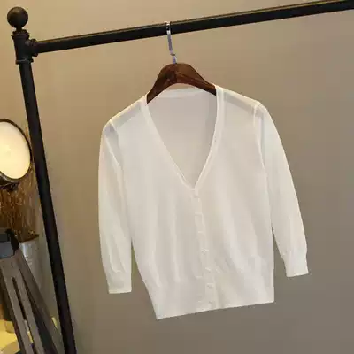 Knitted cardigan women's seven-point sleeve thin short ultra-thin outer with Ice Silk sunscreen women's 2020 Summer new shawl