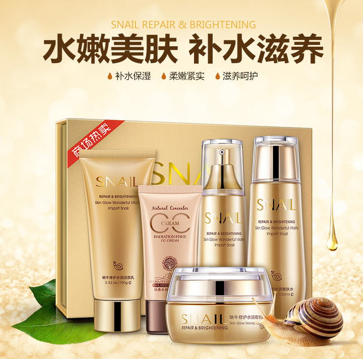 Snail Stock Liquid Cosmetics Kit Moisturizing Moisturizing Brightening White Tibright Skin Color Beauty Care Products Lady