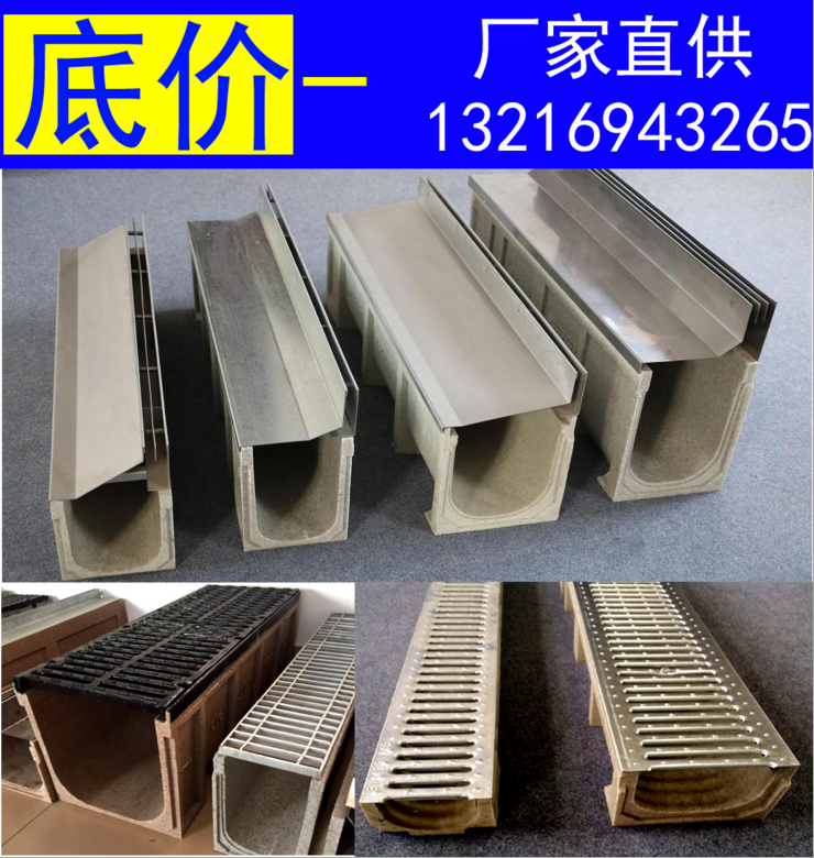 Finished Linear Drainage Ditch Stainless Steel Slit Type Grilles Drain Tank U Type Aqueduct Resin Concrete Drainage Ditch