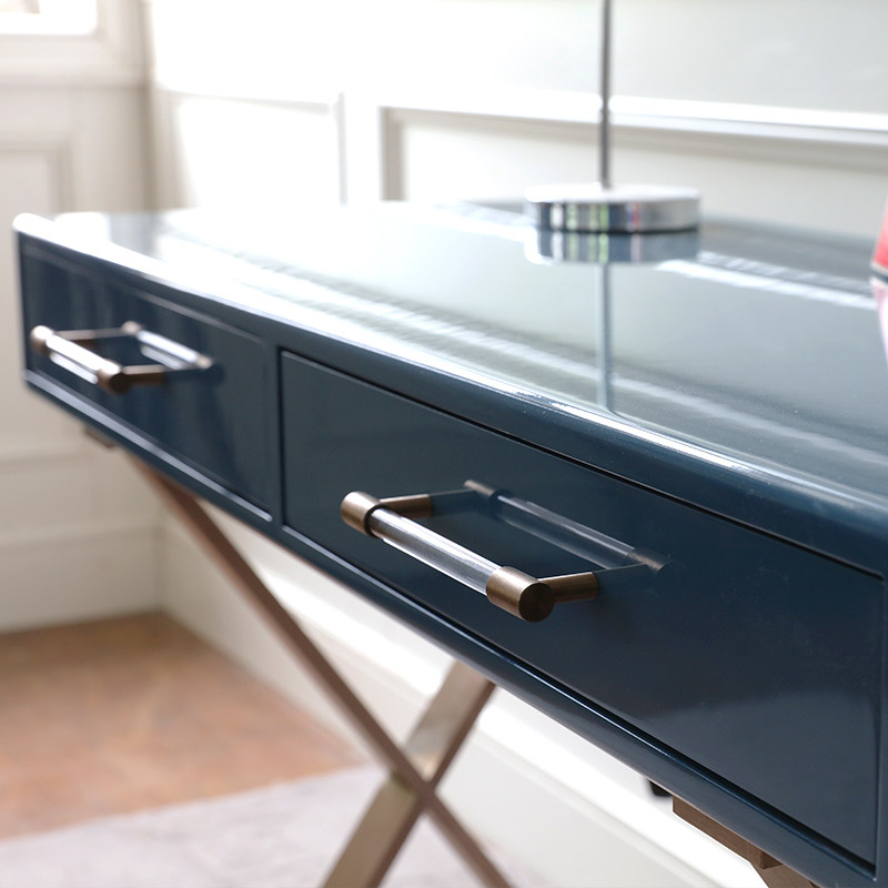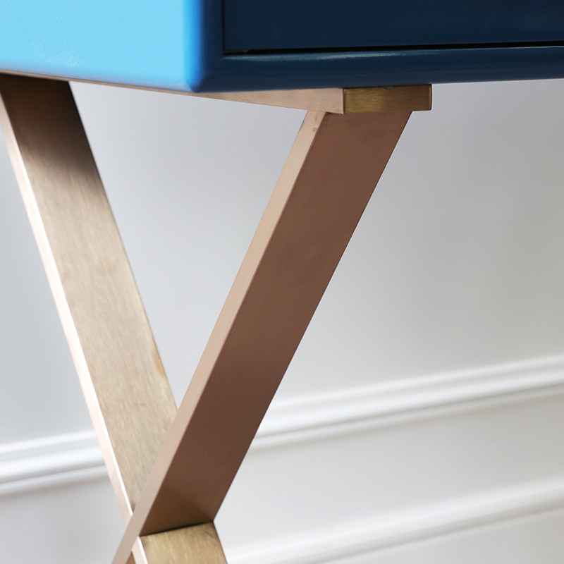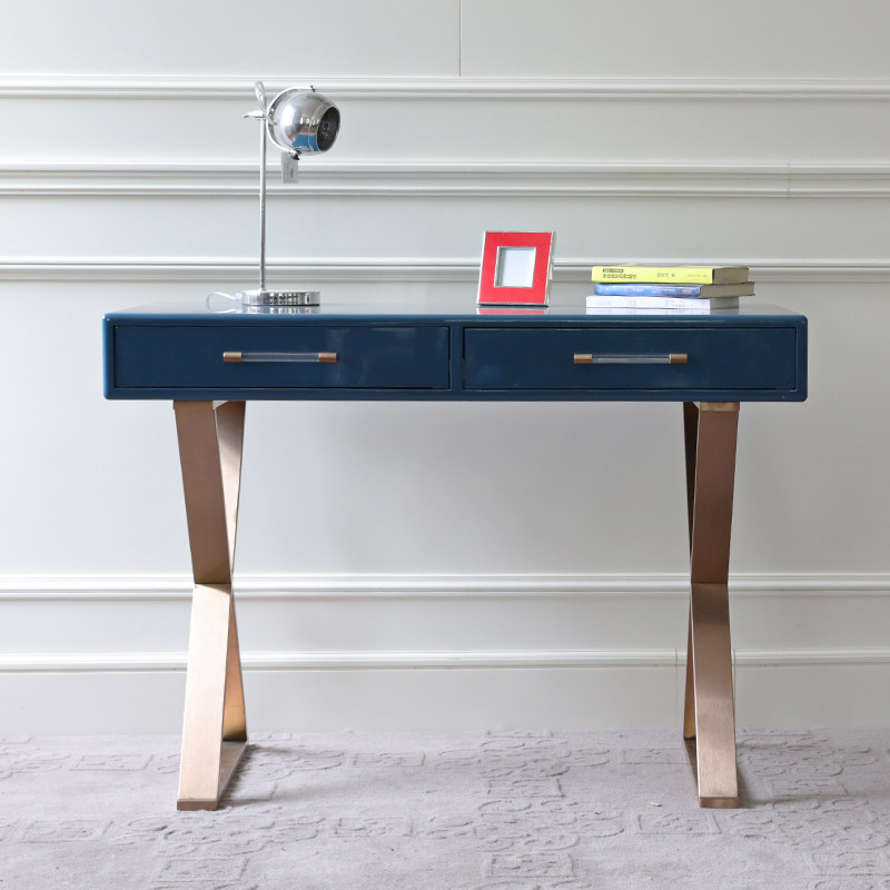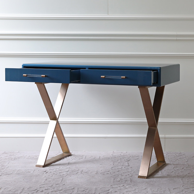 Simple modern desk study table stainless steel Nordic light luxury blue metal foot dressing table bedroom solid wood